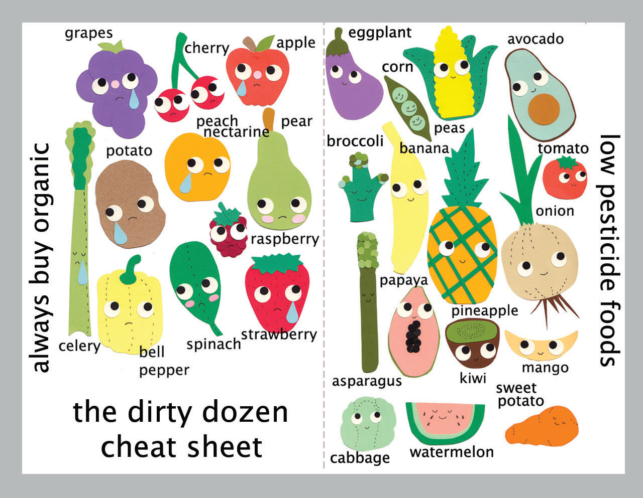Since then I have been trying to make other little changes such as eliminating junk from our junk drawer and buying more organic foods. I am learning slowly. I had to print out a chart (below) so I would have a cheat sheet of what was OK to buy organic and not to buy organic.